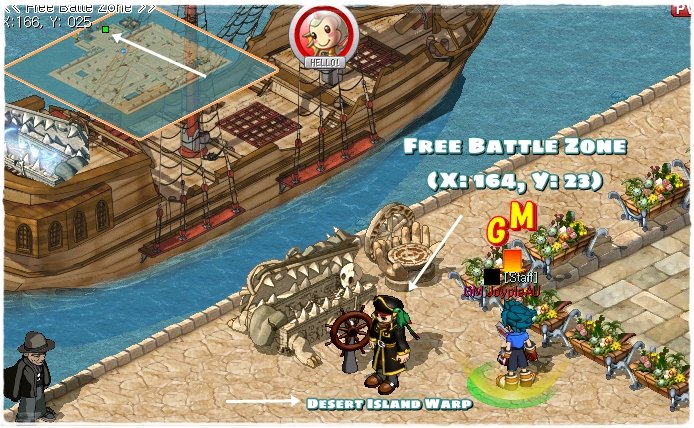 Firstly, you must visit the Desert Island NPC warp which is located in Free Battle Zone (Travel Area).
